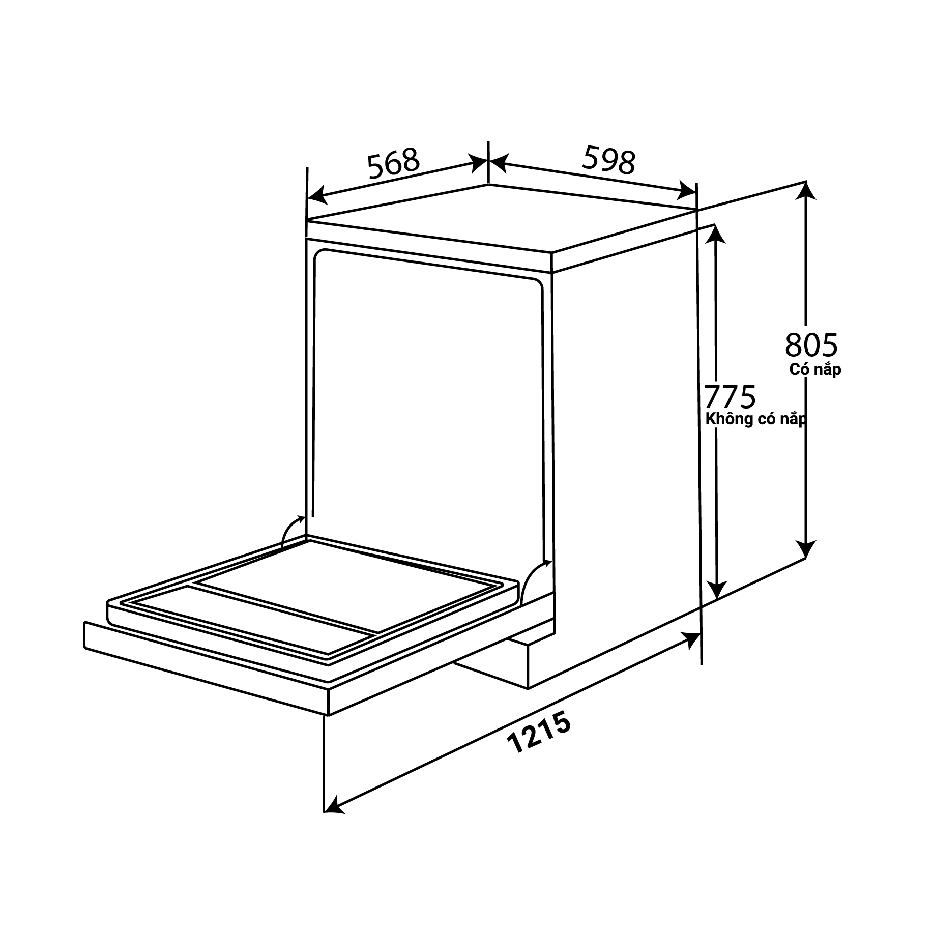 | Kích thước âm tủ | 598 × 568 × 775 mm |